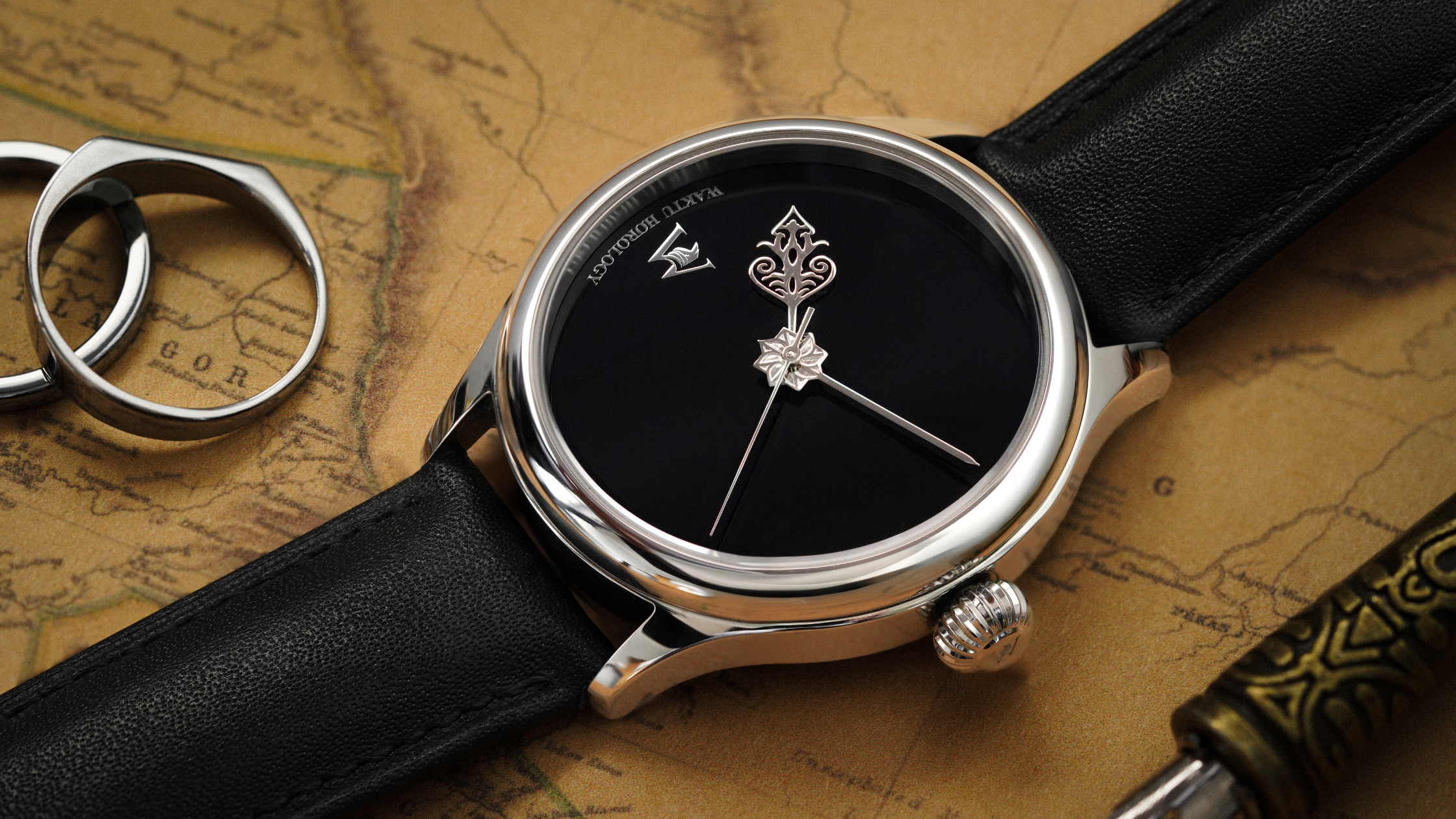 The Waktu logo is subtly positioned at the 9 o’clock mark, serving as both a distinctive brand identifier and a symbolic nod to the seafaring heritage of Malay ancestry, with the "W" alluding to the West and the maritime explorations of the past.